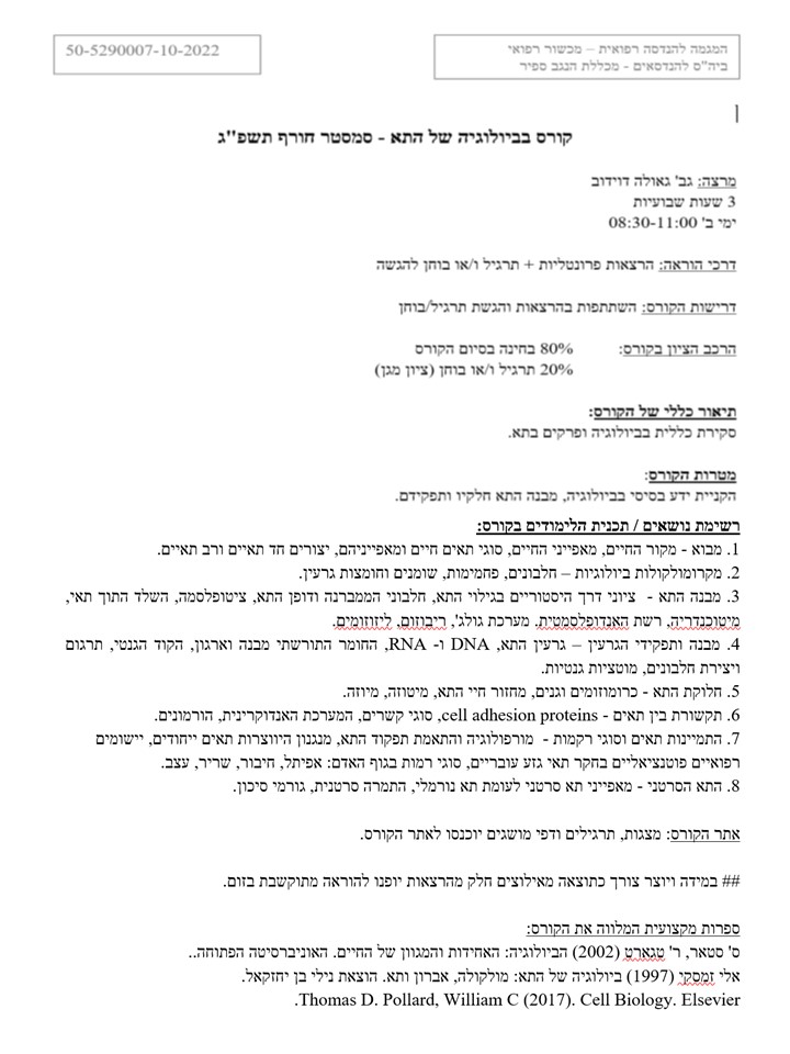 הקניית ידע בסיסי בביולוגיה, מבנה התא חלקיו ותפקידם.